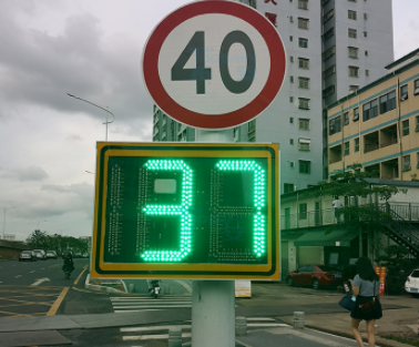 雷達測速反饋標牌是基于雷達測速的電子設(shè)備,安裝于公路兩側(cè),當車輛駛?cè)肜走_檢測區(qū)域時(大約在標志牌正面0-200米范圍),雷達將自動檢測車輛行駛速度,并在顯示屏上用數(shù)字顯示出來。當車速等于或大于設(shè)定的限定速度時,顯示屏顯示紅色數(shù)字,提醒駕駛員降低行駛速度,注意行車安全;當車速小于設(shè)定的限定速度時,顯示屏顯示綠色數(shù)字,駕駛員可正常行駛。