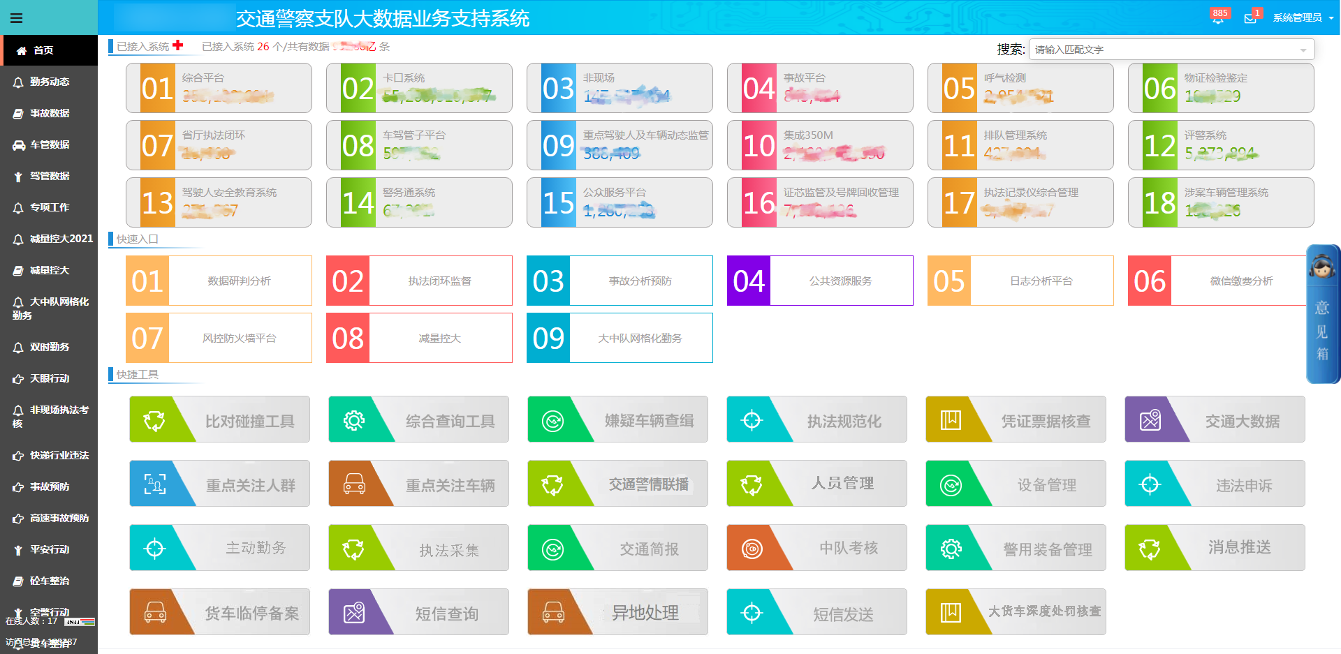 3. 平台从数据分析、挖掘为出发点,实现面向全业务流程的数据综合分析和挖掘,为交管实战应用、综合管理和顶层决策进一步提供有价值的信息。
